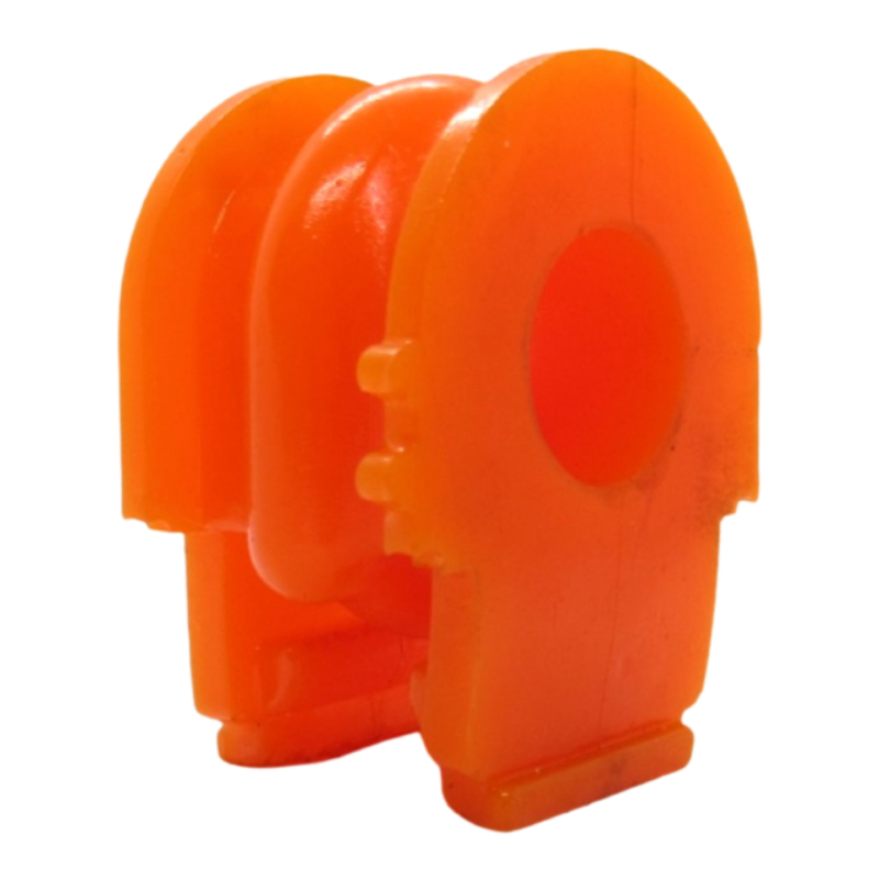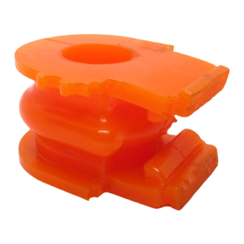 Втулка стабілізатора — це спеціальна деталь підвіски, яка виконує роль амортизуючого елемента, стабілізуючи роботу підвіски, забезпечуючи точність керування та зменшуючи вібрації кузова. Вона виготовлена з високоякісного трьохкомпонентного поліуретану гарячого затвердіння, що гарантує оптимальне поєднання жорсткості та еластичності. Суцільна конструкція дозволяє максимально щільно облягати стабілізатор без розрізу, що знижує ризик люфтів та нерівномірного зносу.