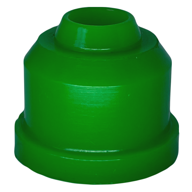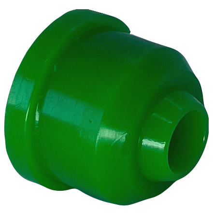 Втулка з полімерного матеріалу виготовляється методом гарячого лиття із застосуванням трьохкомпонентного складу французького виробництва, що гарантує високу точність відливки, стабільну якість і збереження експлуатаційних властивостей навіть в умовах підвищених навантажень. Вона має аналогічну до оригінальних гумових деталей жорсткість, проте вигідно відрізняється довговічністю та стійкістю до агресивного середовища.